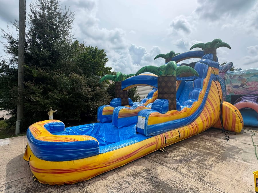 Book the 18ft Sunrise Palms today and make your next summer party unforgettable. Contact us to reserve this water slide and lock in delivery for Citrus County and surrounding areas. Let the splash begin! 🏖️🎉