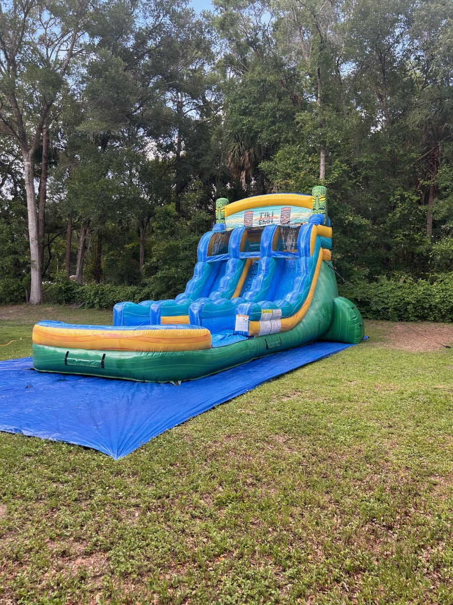 Make a splash at your next event with the 15ft Tiki Double Shot slide, available for delivery in Citrus County and surrounding areas, Whether you're hosting a backyard barbecue, birthday party, or corporate event, this inflatable slide is sure to keep your guests entertained and smiling all day long. 🎉